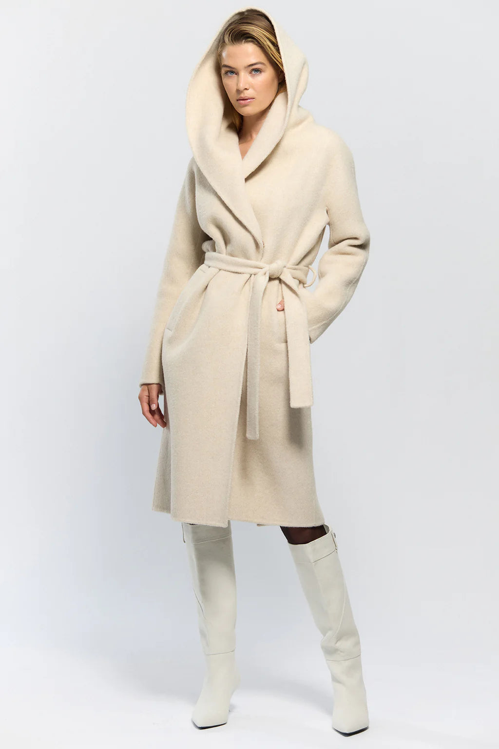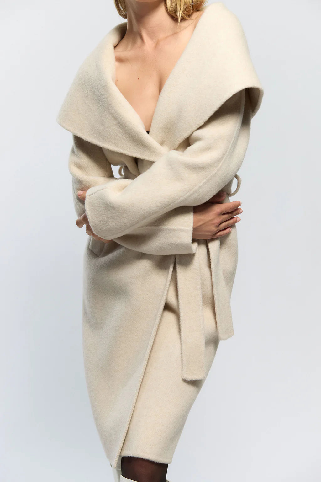 CIARA är en omlott kroppsnära kappa, handgjord dubbel ansikts alpackaull, ultramjuk och ofodrad.