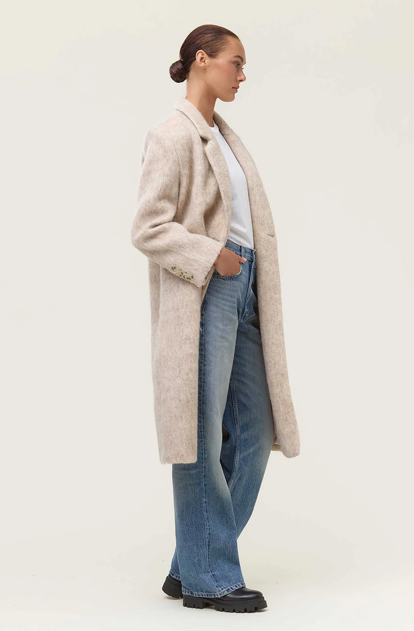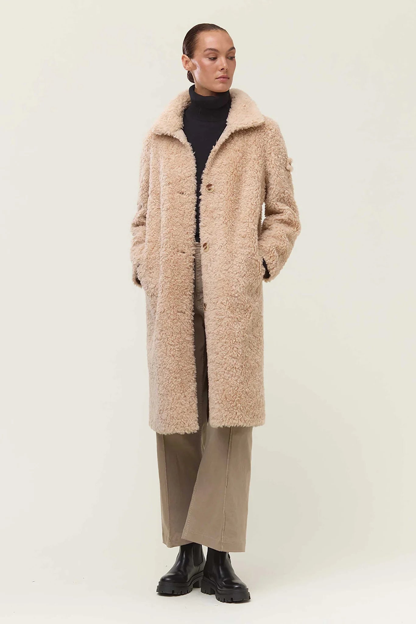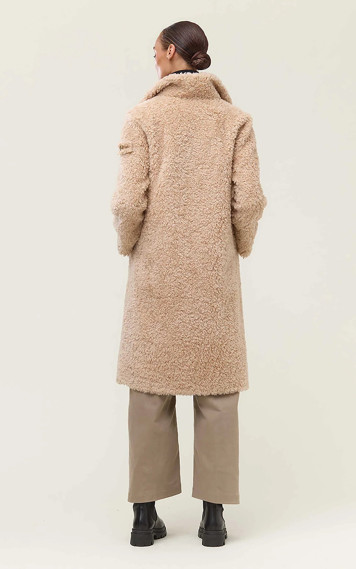 Emy-kappan är tillverkad i ullkvalitet på utsidan och konstläder på insidan.