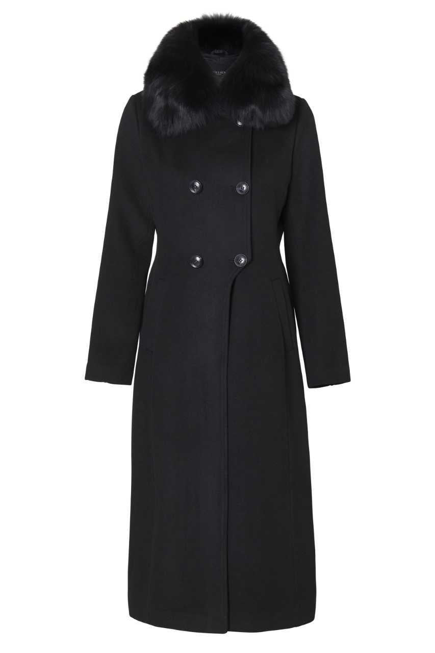 Alba is a warm double-breasted trench made in luxurious wool. with detachable fur collar. Hollies' logo-printed lining.