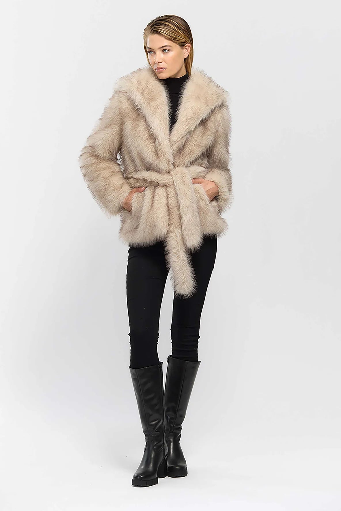 Ice bear is a jacket made in faux fur fox look. Closed with hook and eye at front. Pocket in sidseam.