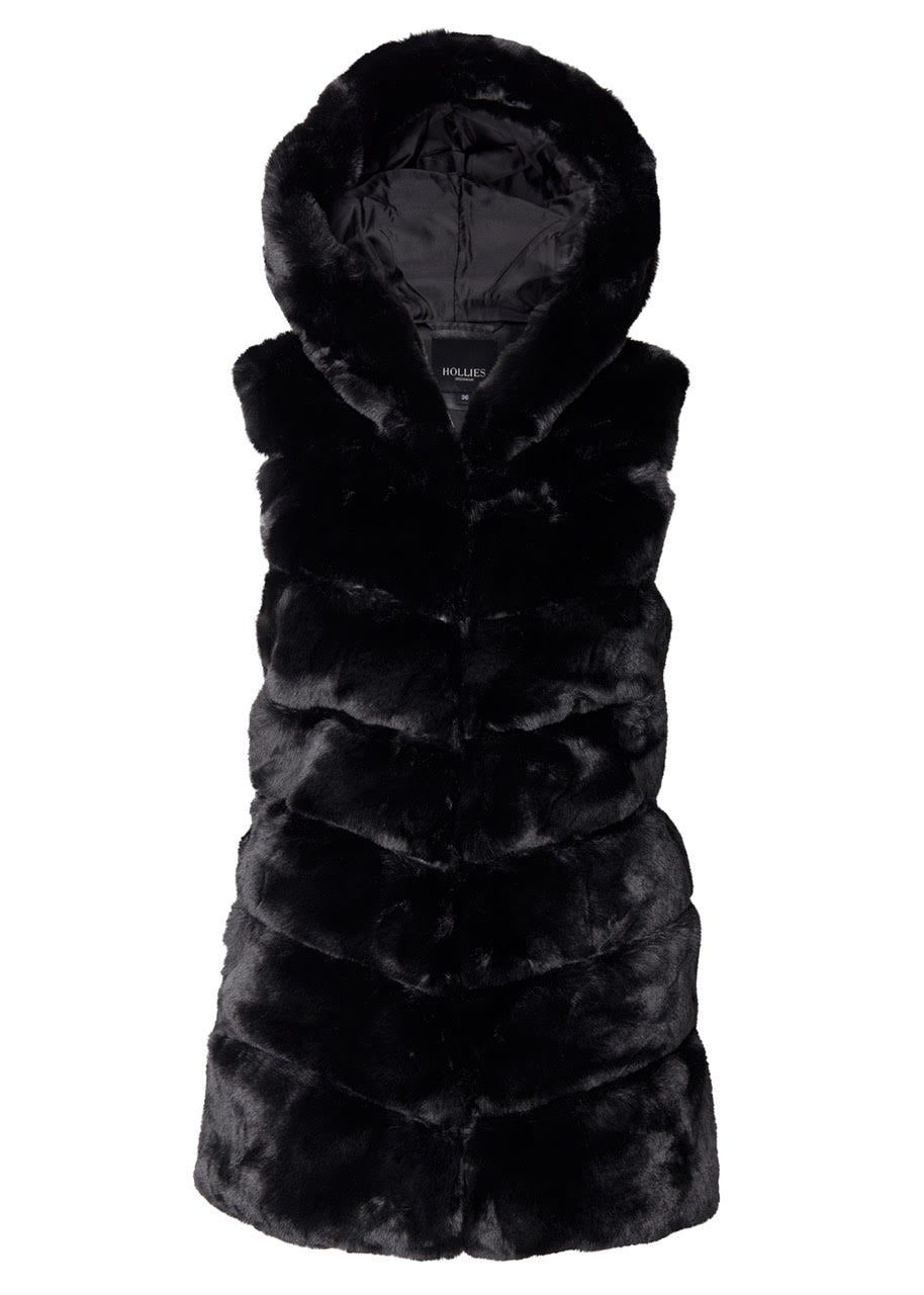 HOLLIES Isabel Faux fur Väst med luva Svart