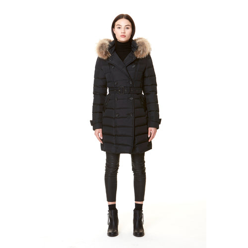 Snygg och varm dunkappa med dubbelknäppning och skärp i midjan.