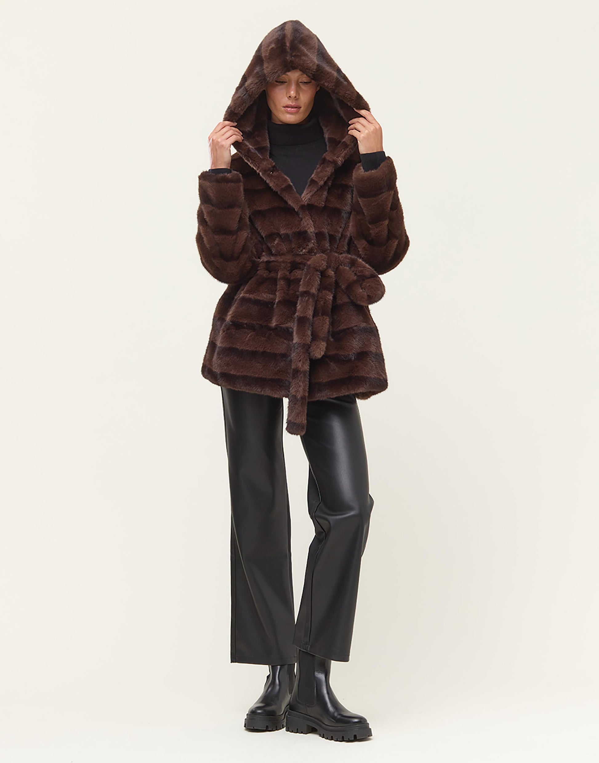 Winona har en mysig huva och bälte i midjan för en feminin look.
