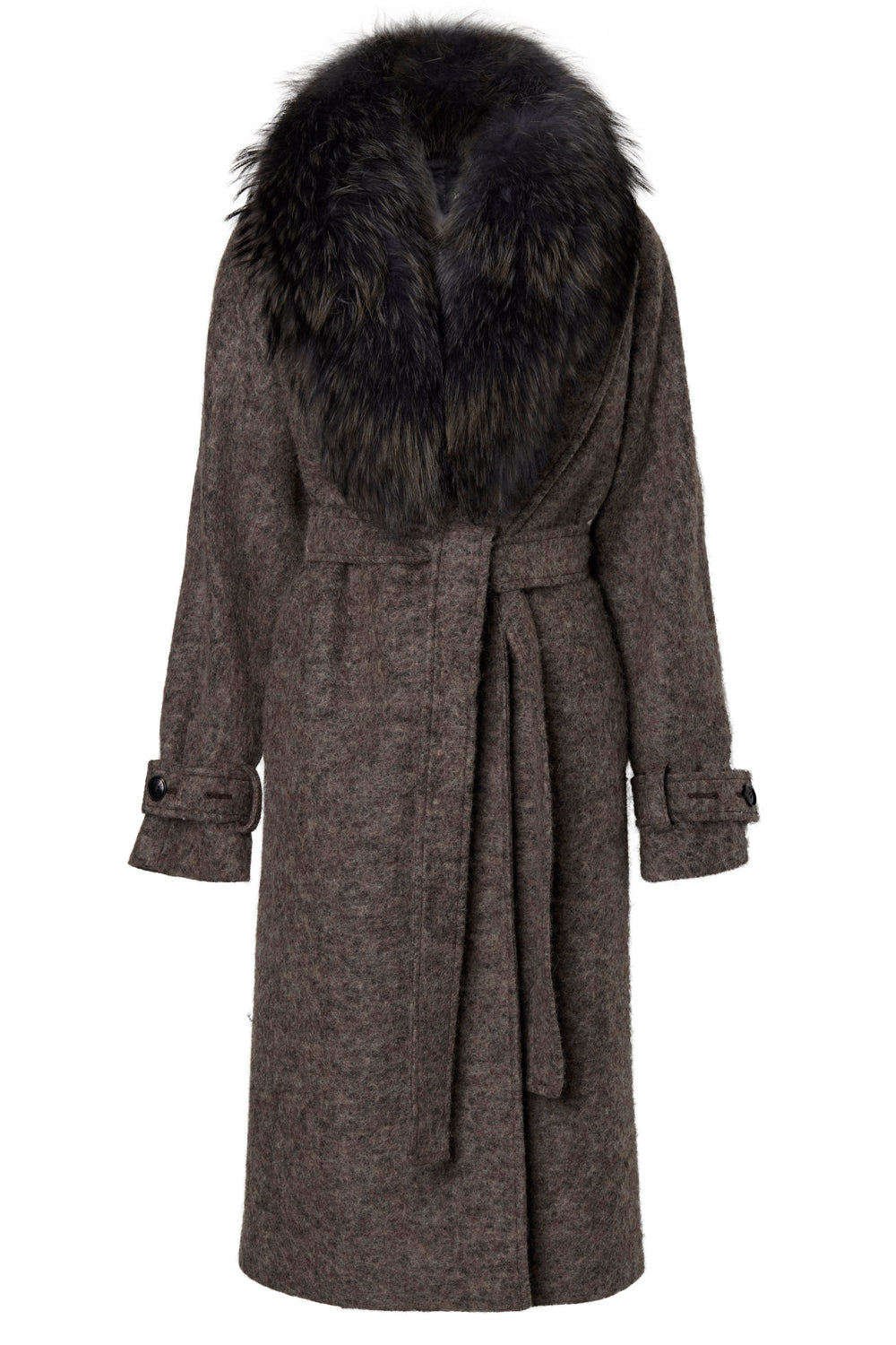 MATERIAL l: 35% Wool. 65% poly, Lining: 100% Polyester. Collar: 100% Silver Fox fur natural Dark Brown